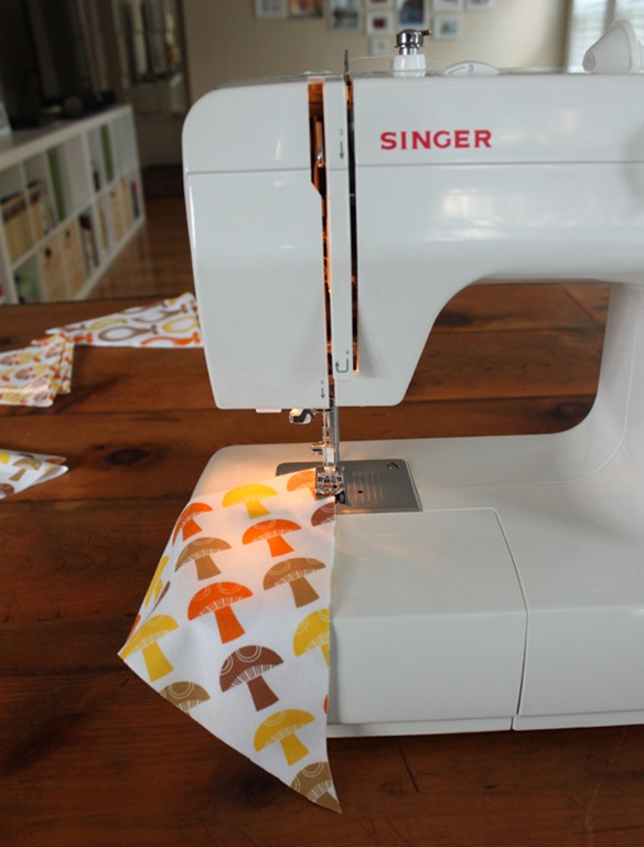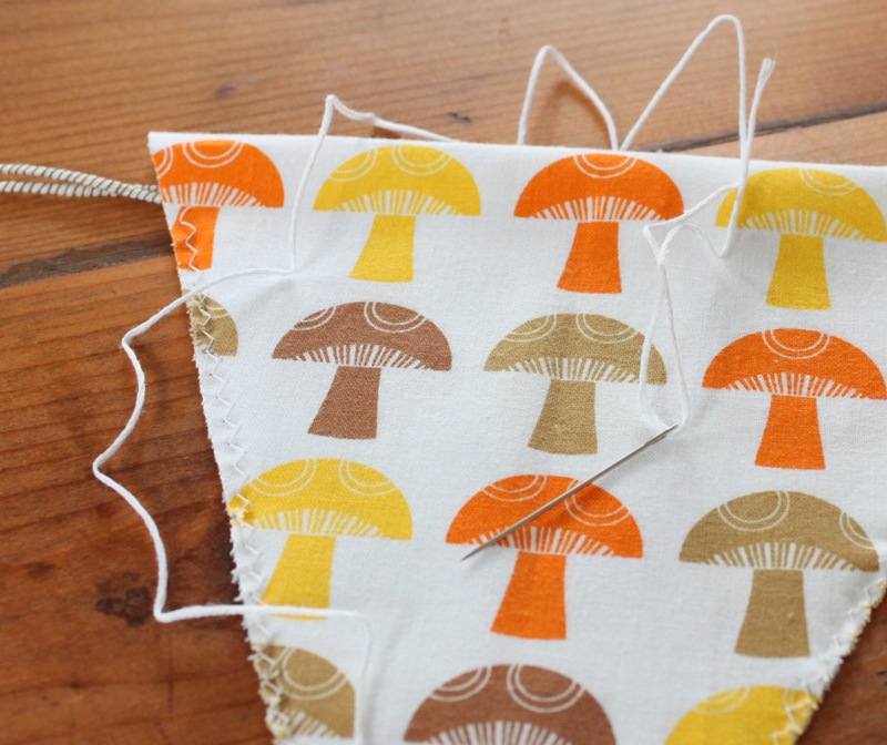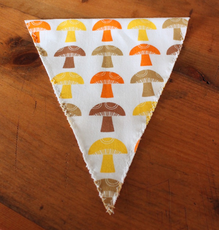 I left about a half inch at the top of each side unsewn to string the pennants on the yarn later.