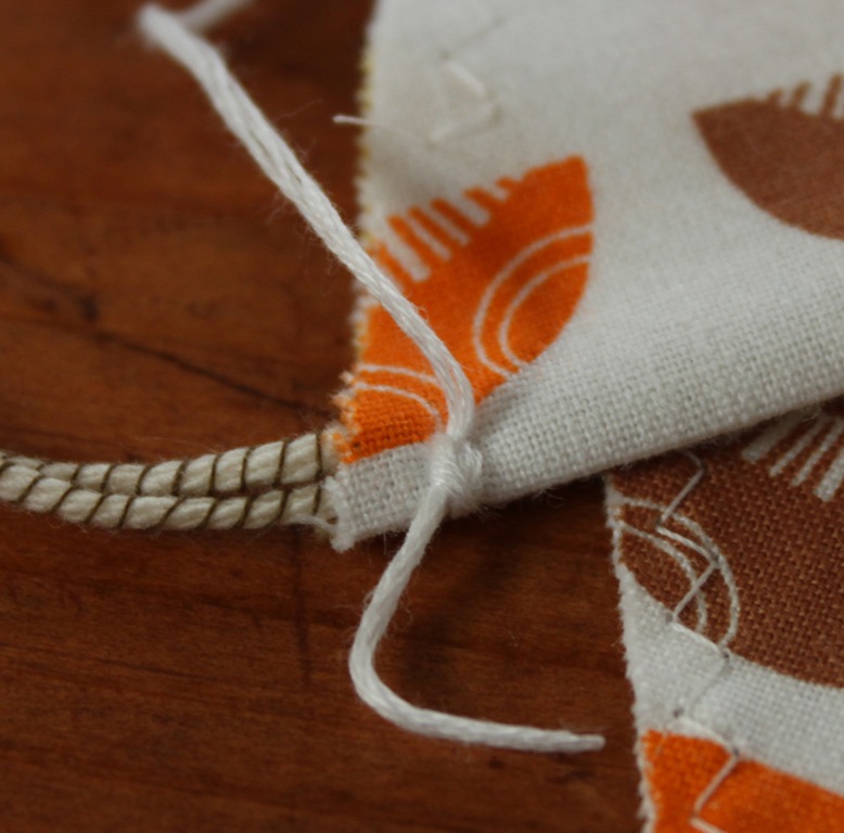 I lined the yarn up at the very top of the pennant and sewed through the corner from the back.