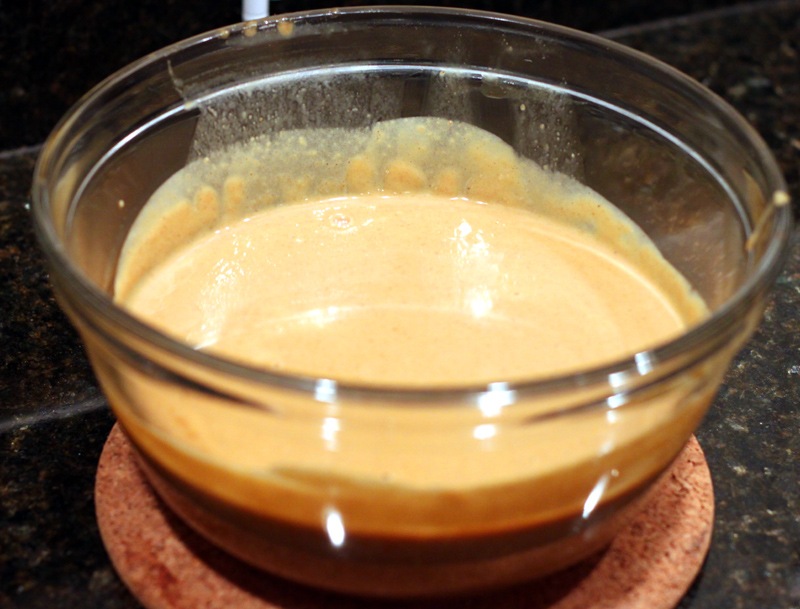 After the eggs are fully incorporated into the mixture (now a custard, really), stir continuously over low heat until the mixture has fully thickened. This takes 7-10 minutes. Don’t skimp on the stirring, if you do the eggs will separate and the custard will be ruined! After the custard is done, transfer it back into the heat-safe bowl. I actually strained my batter into the bowl but that step isn’t necessary. I just wanted to make sure there weren’t any big pumpkin bits. Let the batter come to room temperature and then put it in the fridge overnight.