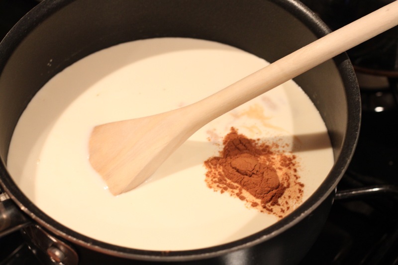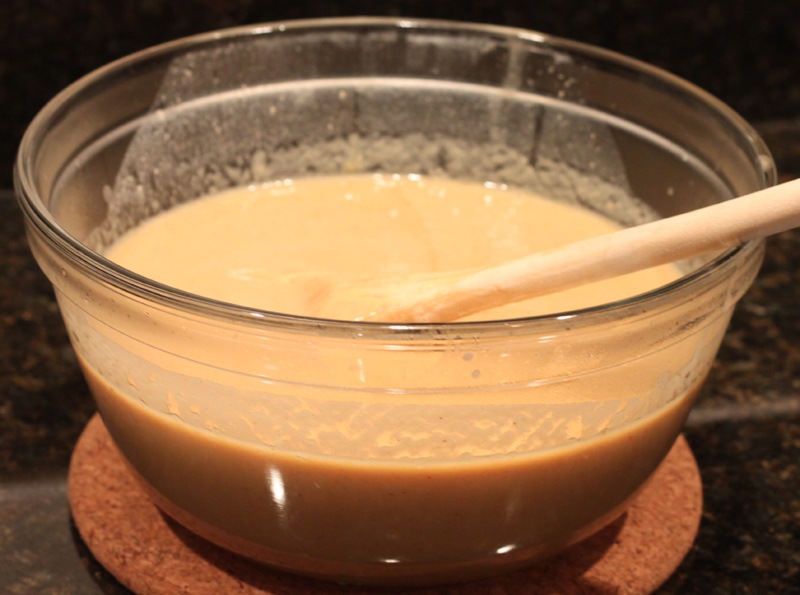 After the eggs are fully incorporated into the mixture (now a custard, really), stir continuously over low heat until the mixture has fully thickened. This takes 7-10 minutes. Don’t skimp on the stirring, if you do the eggs will separate and the custard will be ruined! After the custard is done, transfer it back into the heat-safe bowl. Let the batter come to room temperature and then put it in the fridge overnight.