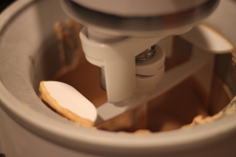 When the batter has chilled overnight, it’s time to make ice cream! According to your ice cream mixer manufacturer’s instructions, mix the batter in the attachment bowl until it becomes ice cream. For my KitchenAid, this takes 20-30 minutes.