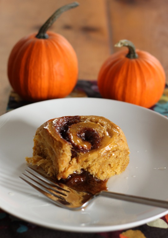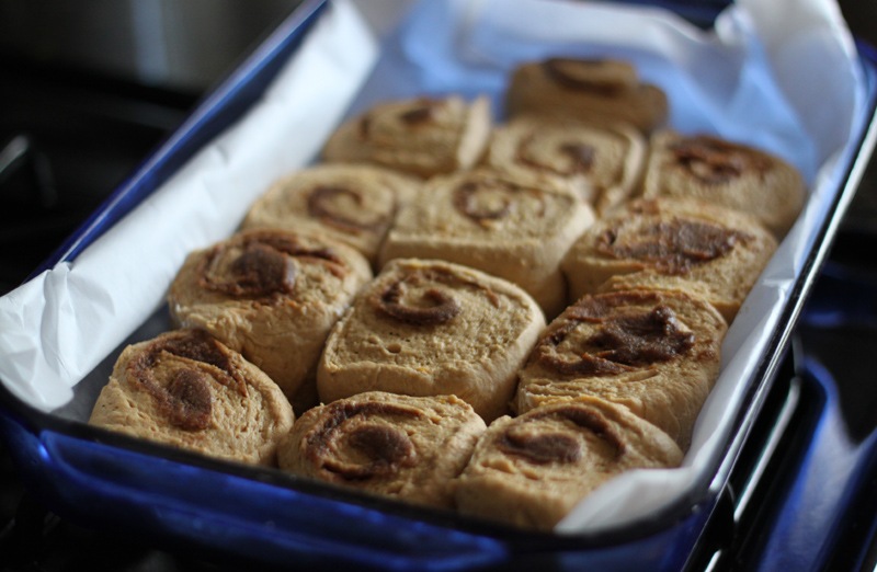 As you can imagine I keep a long list of bookmarked recipes. There’s nothing better than having a few free hours on the weekend to make whatever I want with a long list of possibilities in my collection. I had some extra pumpkin left over from my pumpkin shopping spree and had the perfect recipe inspiration: Smitten Kitchen’s Pumpkin Cinnamon Rolls. I changed the recipe a bunch and this is what I came up with. These cinnamon rolls are an excellent seasonal treat and I hope you try these!