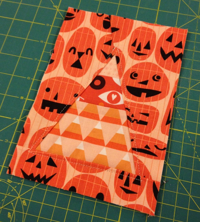 Since the “mug rug” featured a candy corn design, I went all out with the Halloween fabric.