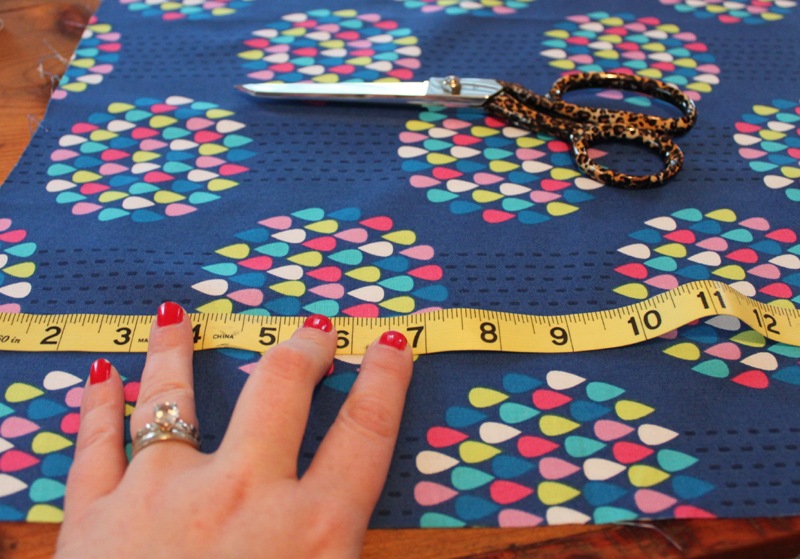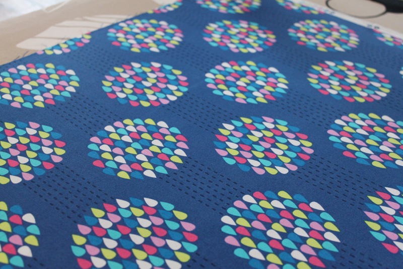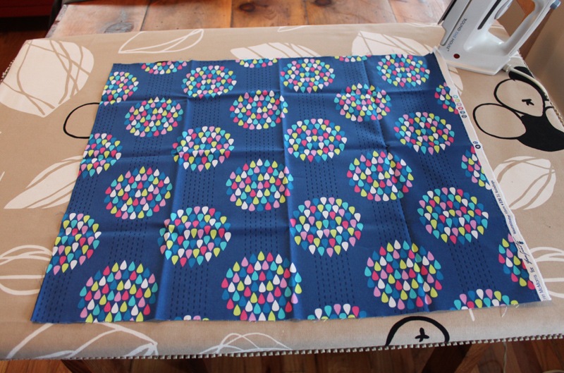 I always start any sewing project with ironing my fabric first. I thought this particular fabric (Erin McMorris’ Raindrops) was appropriate for the day since I was hunkered down at home while Hurricane Sandy was raging outside. Isn’t it cute?