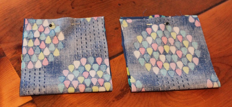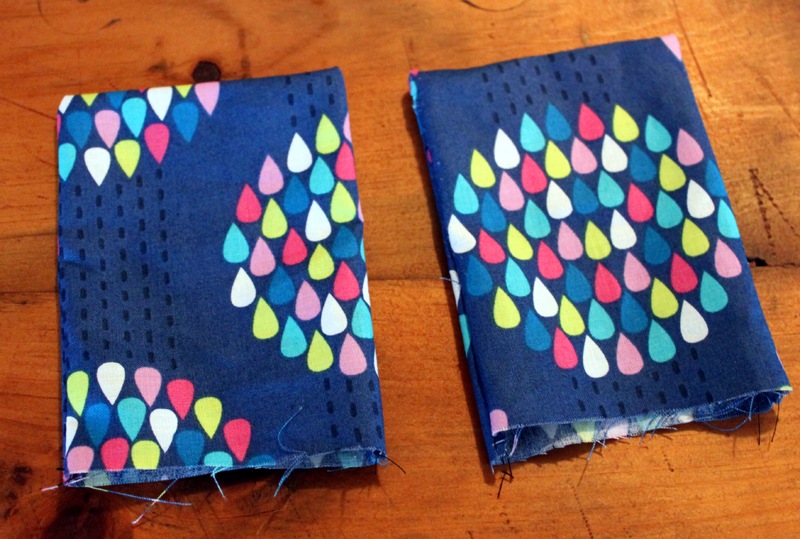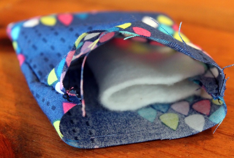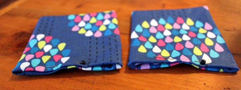 The pattern called for two 4.5” x 10” pieces of fabric and two 4” x 4” pieces of batting.