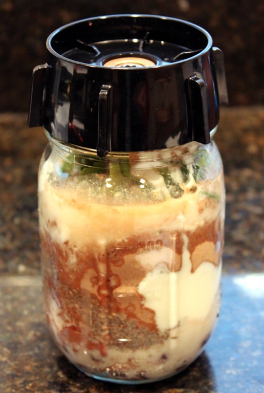 Add all of the ingredients to a medium sized (12 oz.) mason jar. Looks appetizing, no?