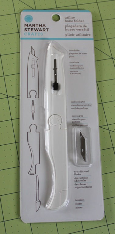 You will need a paper awl or another tool to gently score the holes through the notebook paper. I picked up this utility bone folder by Martha Stewart at the craft store and I love it. It’s a bone folder, utility knife, tweezer set, embossing tip, and piercing tip all in one. Gotta love a multitasker like this!