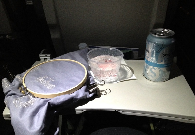 The flight home was relatively quick (4.5 hours). I worked on my embroidery project and John watched UFC. When we arrived back home in Boston we made it from the plane to our front door in 15 minutes by cab. Not too bad!