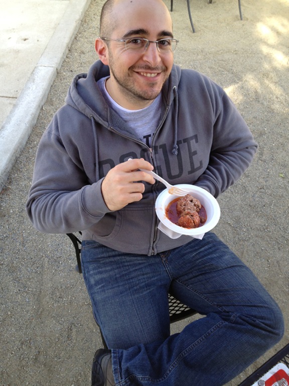 John enjoyed a meatball as we looked on to the Little Italy open air bocci court.