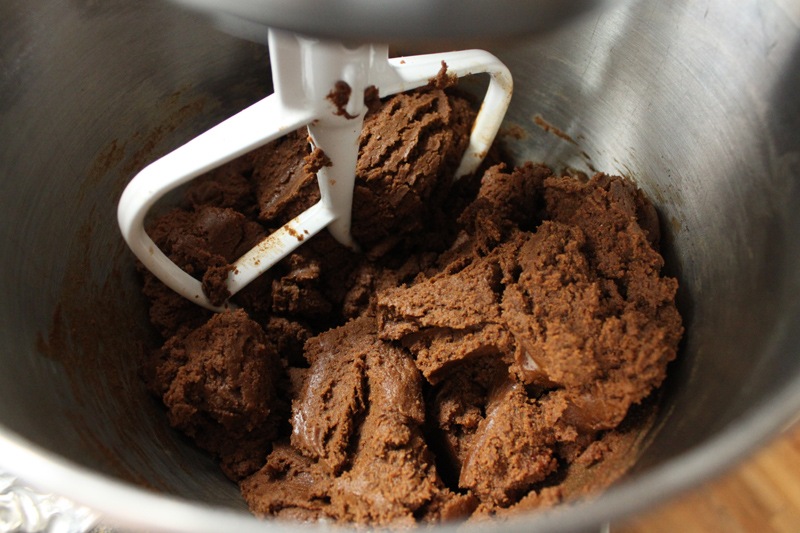Cream the butter, coconut oil, and sugar together until light and fluffy. Next, add the molasses, egg, and cookie butter. When those ingredients are mixed together, add in the spices and baking soda, and then slowly mix in the flour.