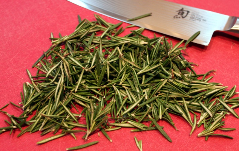 Start by finely chopping the rosemary. I bought a big bunch and chopped the whole thing up at once for a few different recipes. If you go this route just make sure to take out 2 tbsp. of the chopped rosemary for this recipe.