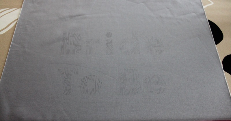 I then cut out the letters I wanted to use, measured them all out on the fabric to make sure the spacing looked good, and ironed them on. It says “Bride To Be” if you can’t see it clearly.