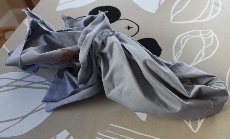 When all the sewing was done it was time to turn the bag right side out. I ripped out a few stitches at the bottom of the interior lining and then slowly pulled the bag right side out.