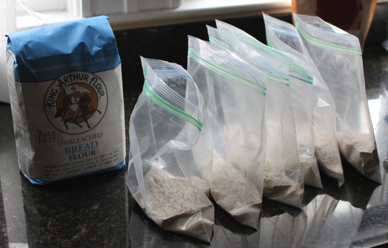 To make life on Sundays easier I make a bunch of pre-measured dough starter bags in advance.