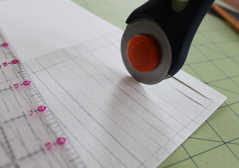 Using my rotary cutter and utility blade, I carefully cut the fifteen lines on the front of the card.
