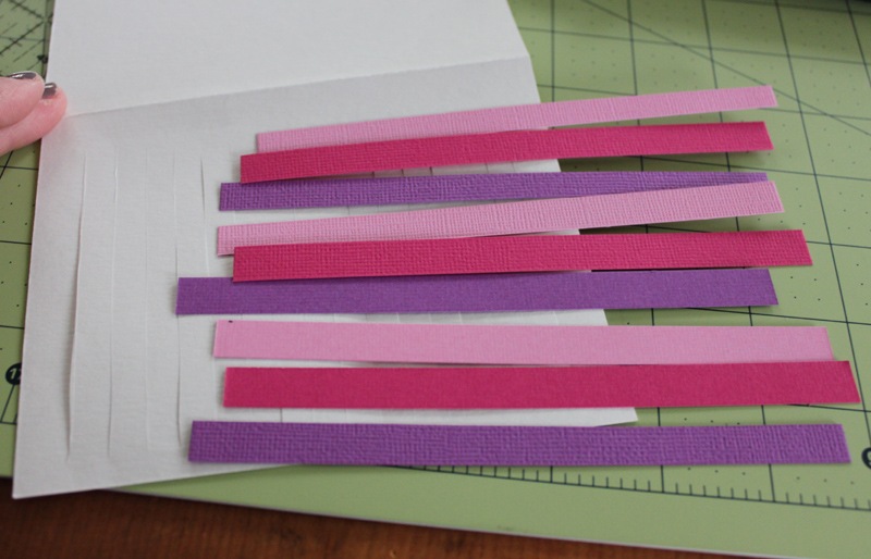 Bonus Project – If you have any leftover strips, you can make some cute confetti for the inside of the card. Just trim the strips down into tiny pieces with a rotary cutter or scissors.
