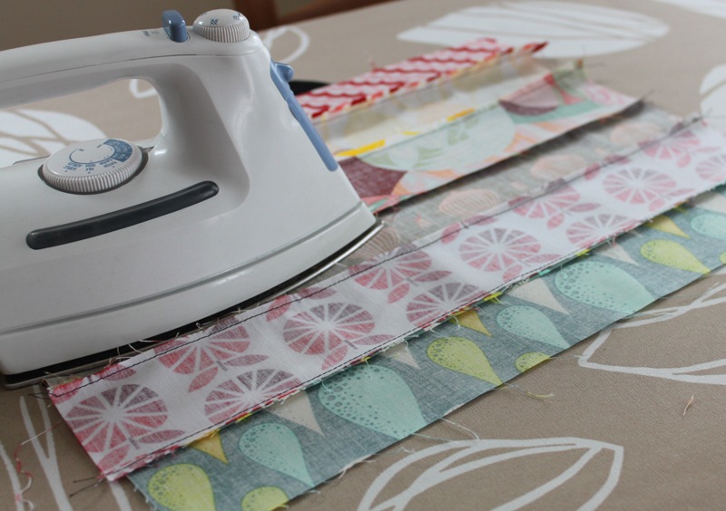 After cutting, I ironed each strip so they would be straight and wrinkle free. Just a tip – ironing constantly during this project is a must (you’ll see as we go on).