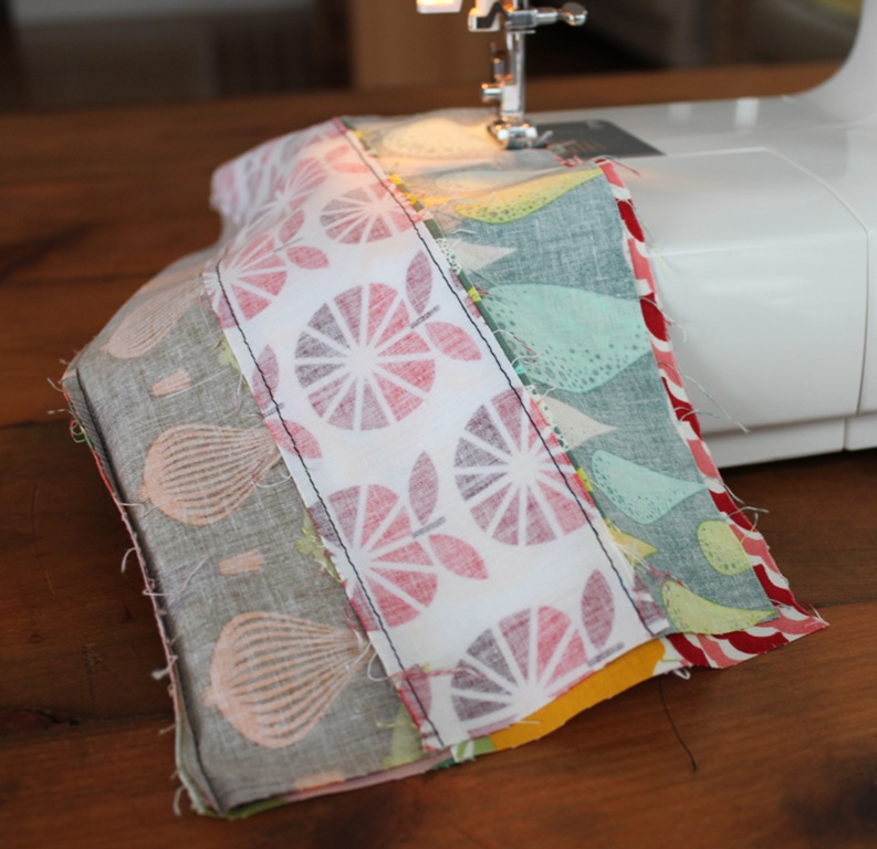 Next I sewed all of the strips together with a 1/4″ seam allowance.