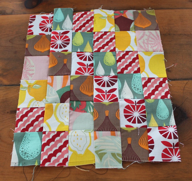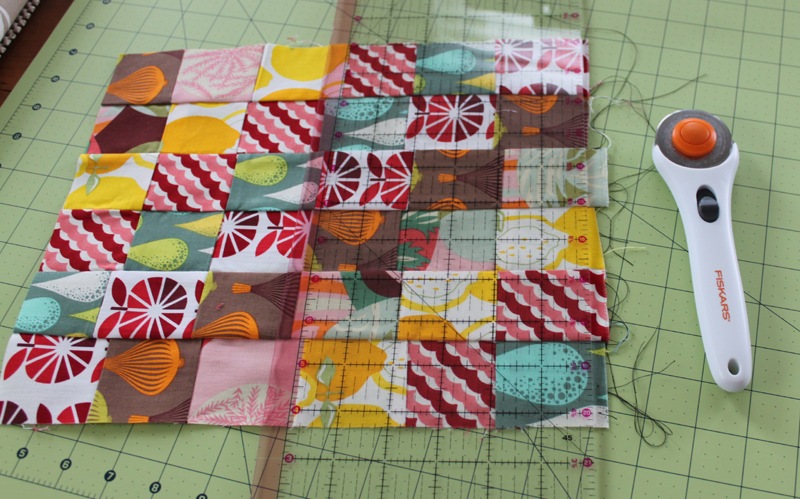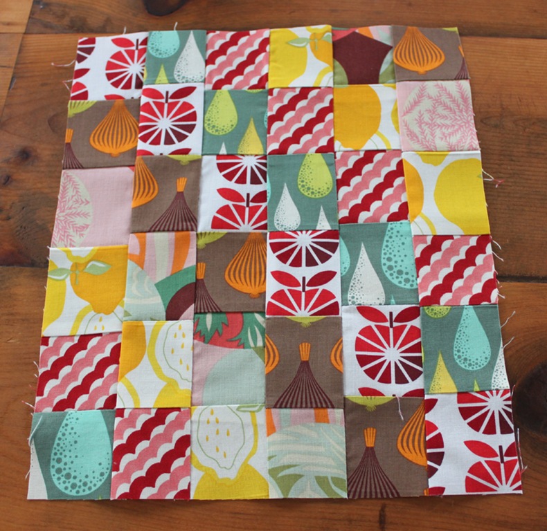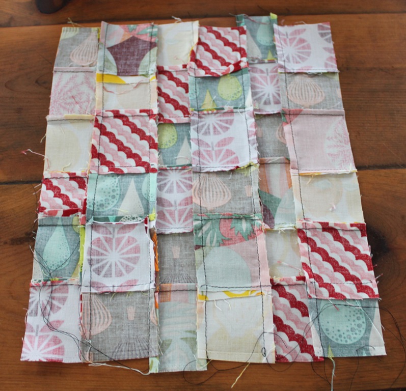 You will then have a pretty block of scrappy squares! Flip it over and iron the seams down again.