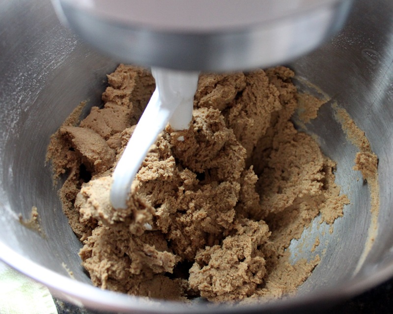 Cream the butter and sugars together until light and fluffy. Next, add the molasses, egg yolk, and vanilla. When those ingredients are mixed together, add in the spices and baking soda, and then slowly mix in the flour.