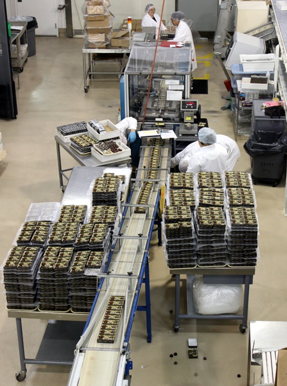 Following the Moose Munch area we got to see the rest of the candy production part of the factory. This included the truffle packing line and the room where they make chocolate covered cherries.