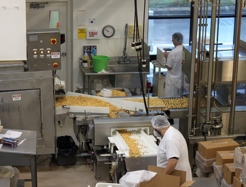 The first stop – the Moose Munch production line! How awesome is Moose Munch? John is addicted to the stuff so I try to always buy him a few bags for his birthday or for the holidays. Can you tell how thrilled he is in this photo?