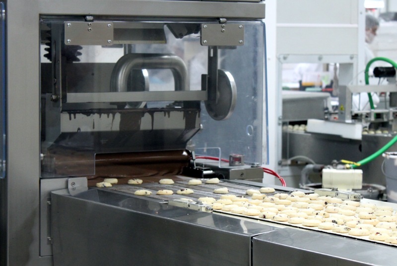 The last stop was the chocolate room where they have a huge enrober that is constantly covering cookies and candy in chocolate!