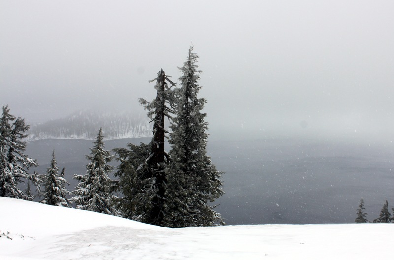As we drove toward Crater Lake the snow continued to fall, getting heavier as we drove higher in elevation (about 6,000 ft). Still, we continued on.