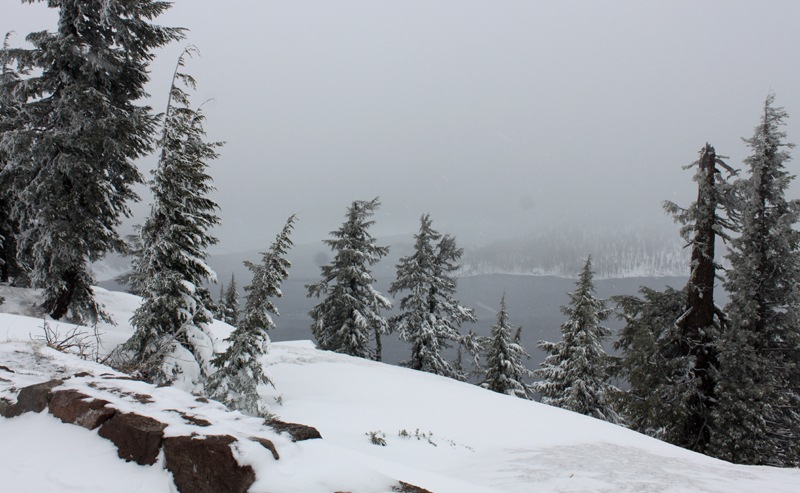 When we arrived at the Crater Lake park entrance (about a 30 minute drive from the lake itself) the park ranger told us they expected 4-5 inches of snow that day. In an almost marriage ending rookie movie, I insisted we keep going up to the lake to which John vehemently disagreed. The roads were not plowed or salted so it was a scary drive up there. And with us fighting the whole way (real talk), it was not a high point of the trip.
