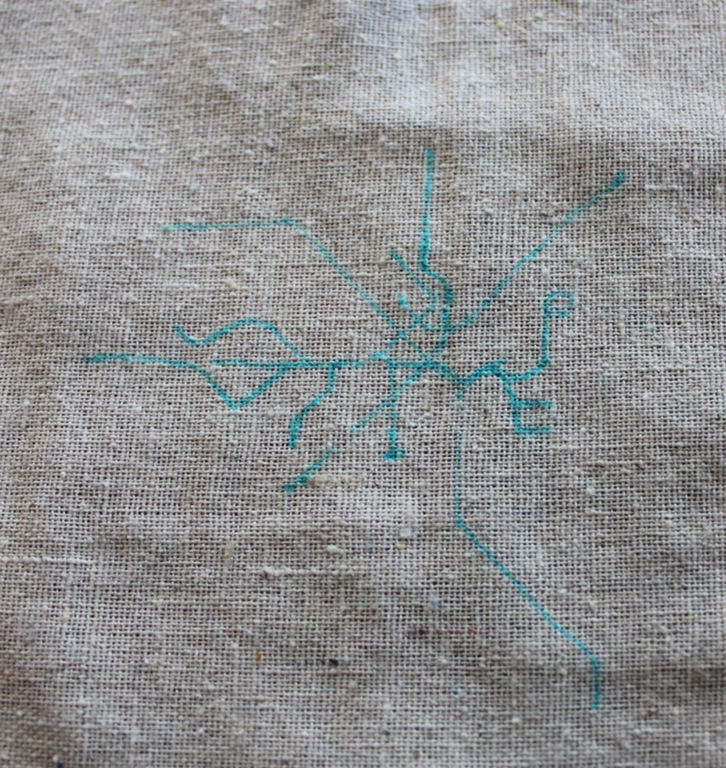 Once the stitching was done I rinsed the fabric under cool water to remove the transfer pen marks. I laid the fabric out flat on a few paper towels overnight to dry completely.