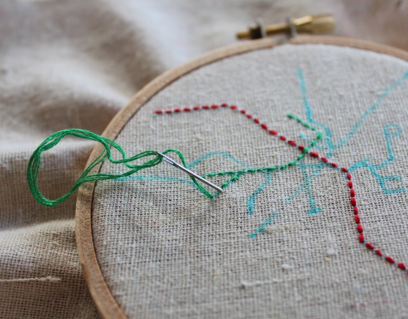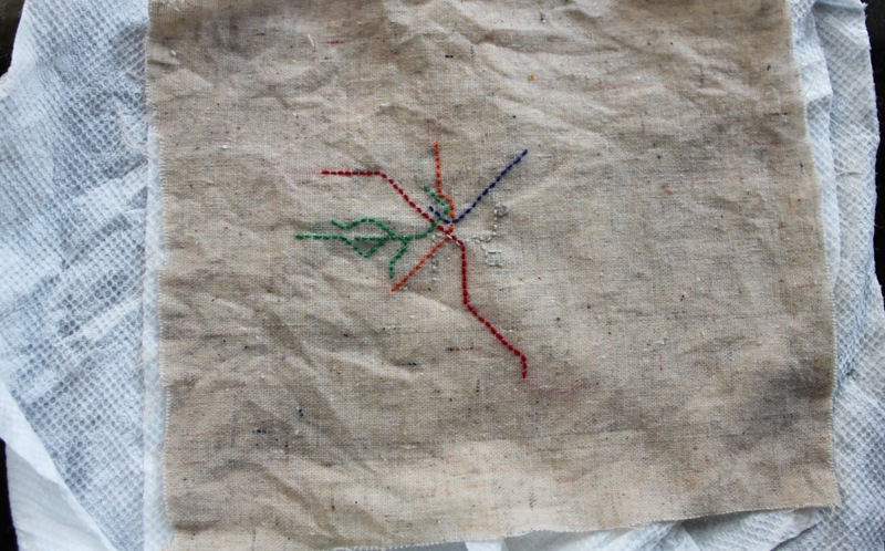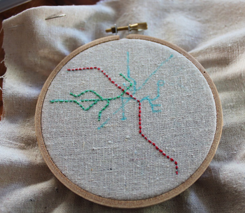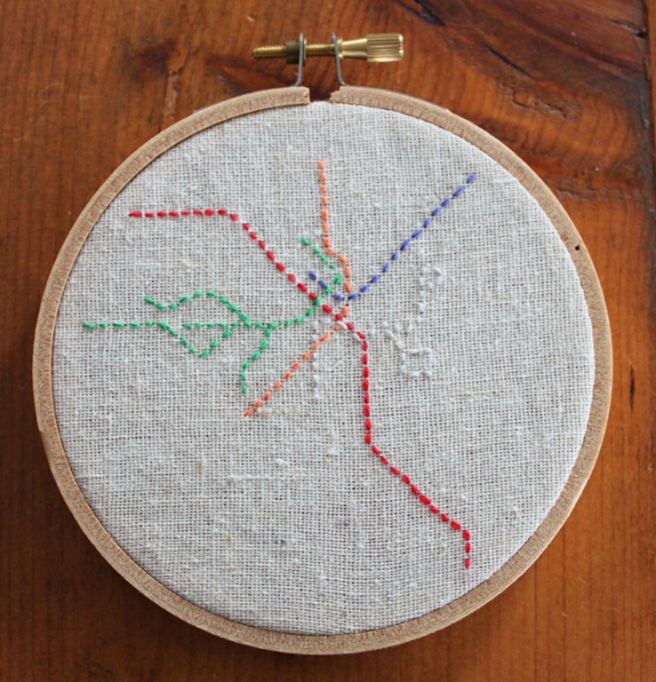 I then just used a simple running stitch to embroider the colored subway lines.