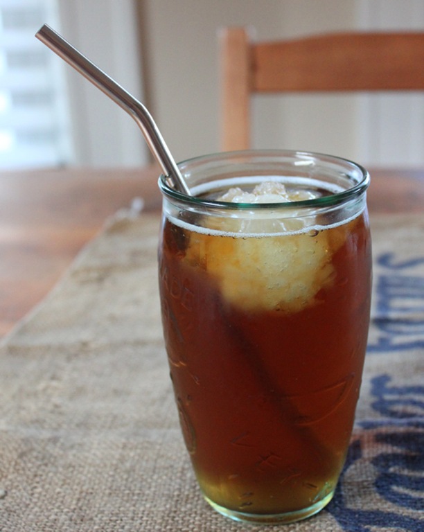 I brew several batches of homemade iced tea every week so we always have some on hand. It’s so easy and I always get a ton of questions about it. Here’s my method: I fill my tea kettle up and boil as usual. I have a 2 quart plastic pitcher that I devote just to iced tea (like these). When the water has boiled I pour it into my pitcher and top off with warm tap water. I steep 4 Lipton tea bags in the pitcher until it has cooled to room temperature. I put on the lid and throw it in the fridge. Super easy!