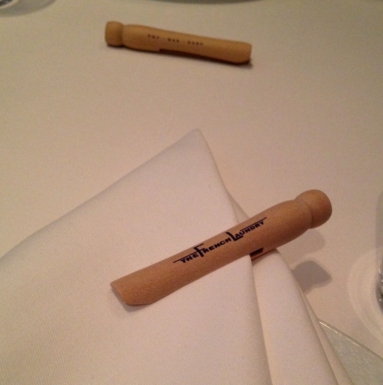 The table was simply set with The French Laundry’s trademark white linens and wooden clothespin. Souvenirs!