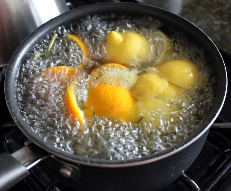 I then covered everything with water and let it simmer away over medium-low heat on the stove. The natural oils and fragrances immediately filled our house. The citrus gave off a clean and sweet aroma while the rosemary lent a more musky and green scent.