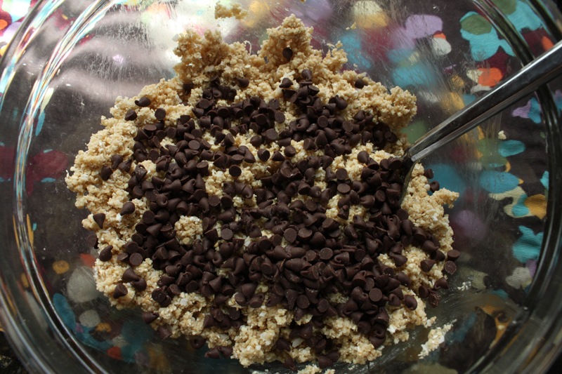 The last step is to add in the mini chocolate chips. You can use full size but I prefer mini in this recipe. Stir to combine!