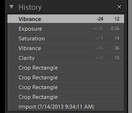 I love the undo button in all computer programs but when you’re photo editing sometimes you realize you made a mistake five steps ago. The History List in Lightroom allows you to see everything you’ve done to manipulate your photo, in order of when you did it. You can then, at any point, click on an action and Lightroom will revert you back to what the image looked like at that step.