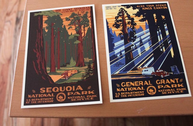 Like all vacations, John and I picked up postcards from every place we visited on our California to Oregon road trip. We bought these two awesomely retro ones from Sequoia National Park in California. I love the design so much and the style matches the postcards we already have on the gallery wall from the Grand Canyon.