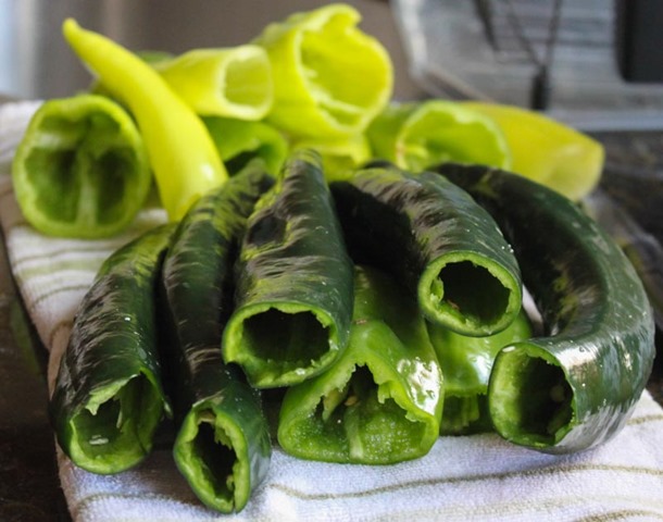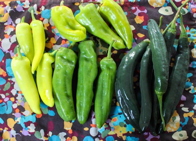 You can make this recipe with any peppers you like – chiles, jalapenos, poblanos, serranos, even bell peppers. I chose this variety because they looked fabulous at the farmers market and because they have a range of heat.