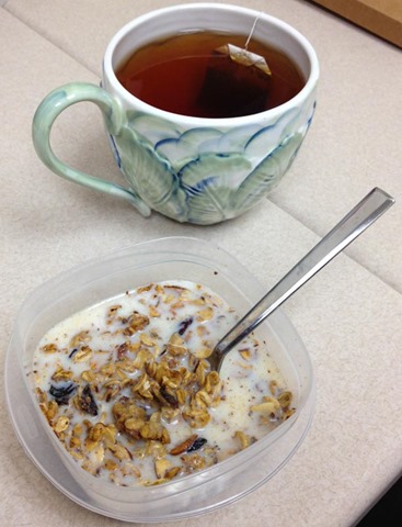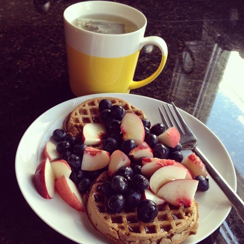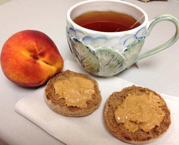 You’ll notice a trend right off the bat about breakfast: tea. I have at least 1 mug everyday, if not more. I switch it up in terms of flavors though – right now I’m on a green tea kick. You might notice another trend – fruit! I definitely try to vary my fruit intake as you’ll see here. I love everything – berries, peaches, apples, bananas, oranges. I think fruit is the perfect compliment to breakfast and try to have that every morning as well.