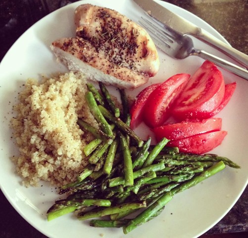 Prompted by my iPhone to make some space in order to upgrade to iOS7, I recently had to go through all of my pictures. I had been randomly taking pictures of all of my healthy meals in preparation to someday write this post. My goal was to have a quick reference of my go-to healthy meals. Well, turns out my pictures spanned an entire year (a little more actually) so I thought it was the perfect time to finally write this post. They aren’t as pretty as my SLR photos but they work.