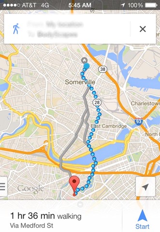 The walk is about 5 miles door to door which Google Maps told me would take about and hour and 40 minutes. I’m a slow walker and knew I’d be stopping along the way to take pictures/stretch so I figured two hours would be a better estimate.