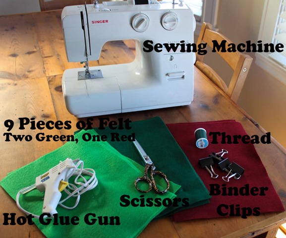 • Nine pieces of felt (3 light green, 3 dark green, 3 dark red – or any colors you like)