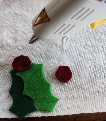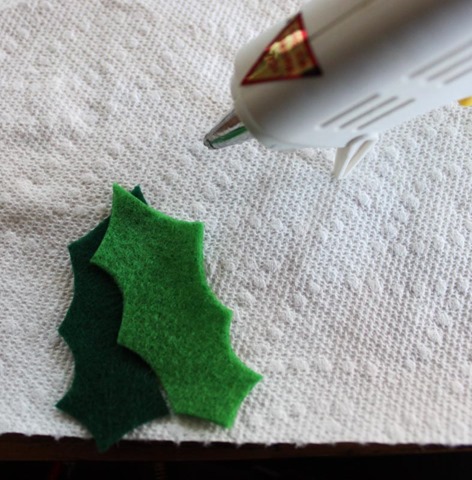 Holly jolly holly leaves! Let them sit for 5 minutes to make sure all of the hot glue has cooled and set.