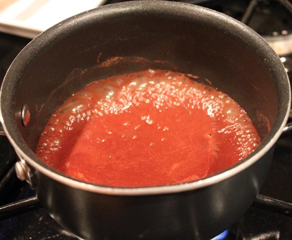 In a small saucepan bring one chai tea bag and the water to a simmer. I use Bigelow’s Spiced Chai tea – it’s really warm, slightly sweet, and perfectly spiced. Simmer over medium heat for 2-3 minutes until the tea has fully steeped.