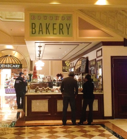 Located just four floors below our room, in the lobby of The Venetian, is the Bouchon Bakery. We’ve been to the Bouchon Bakery in Napa (as part of our endless obsession with Thomas Keller, more on that in a minute) and the Vegas location was just as good, if not better (because there wasn’t a 30 minute line). We stopped at the Bouchon Bakery almost daily for either breakfast (delicious muffins, breakfast sandwiches, tea) or an after dinner treat (amazing cookies, cupcakes, macarons).