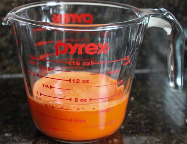 3/4 cup carrot juice, bottled or freshly juiced (3 carrots)