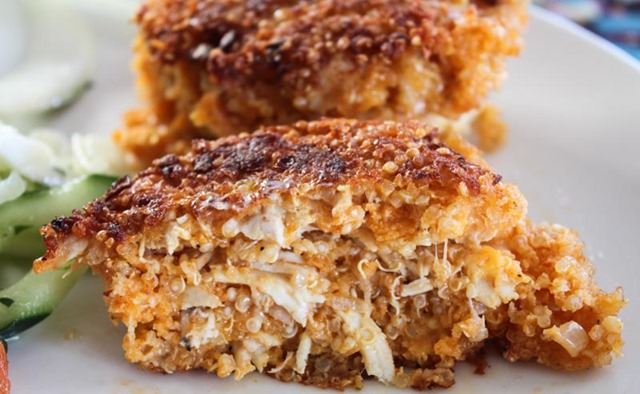 Domestocrat’s Buffalo Chicken Quinoa Cakes (makes 4 large cakes)