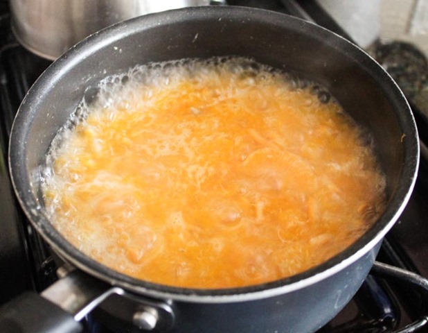 Boil on low for at least 1 hour, or until the mixture has reduced by 2/3 and is thick, tight, and sticky.