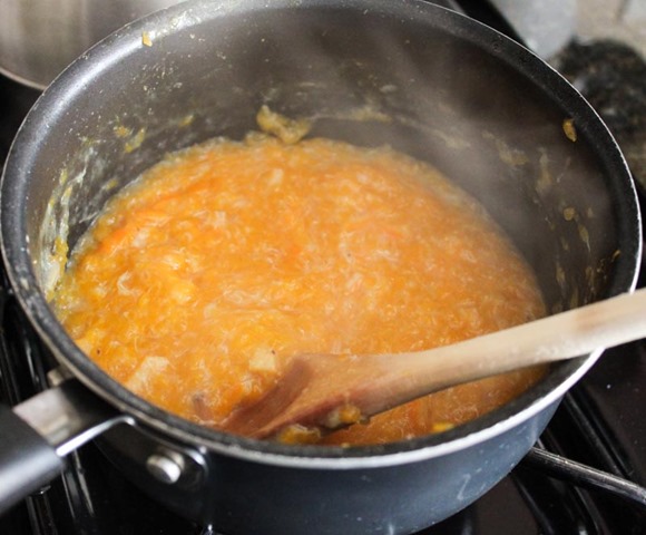 In a medium sauce pot combine all of the ingredients. Yes, by the way, you read correctly – even the lemon seeds – they have tons of natural pectin that will help the marmalade gel up correctly. Bummer is that you do need to fish them out later (it takes like 2 minutes, no big deal).