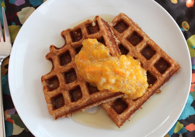 These waffles are topped with syrup and my homemade clementine marmalade but the possibilities are truly endless with the blank canvas that is a basic waffle!